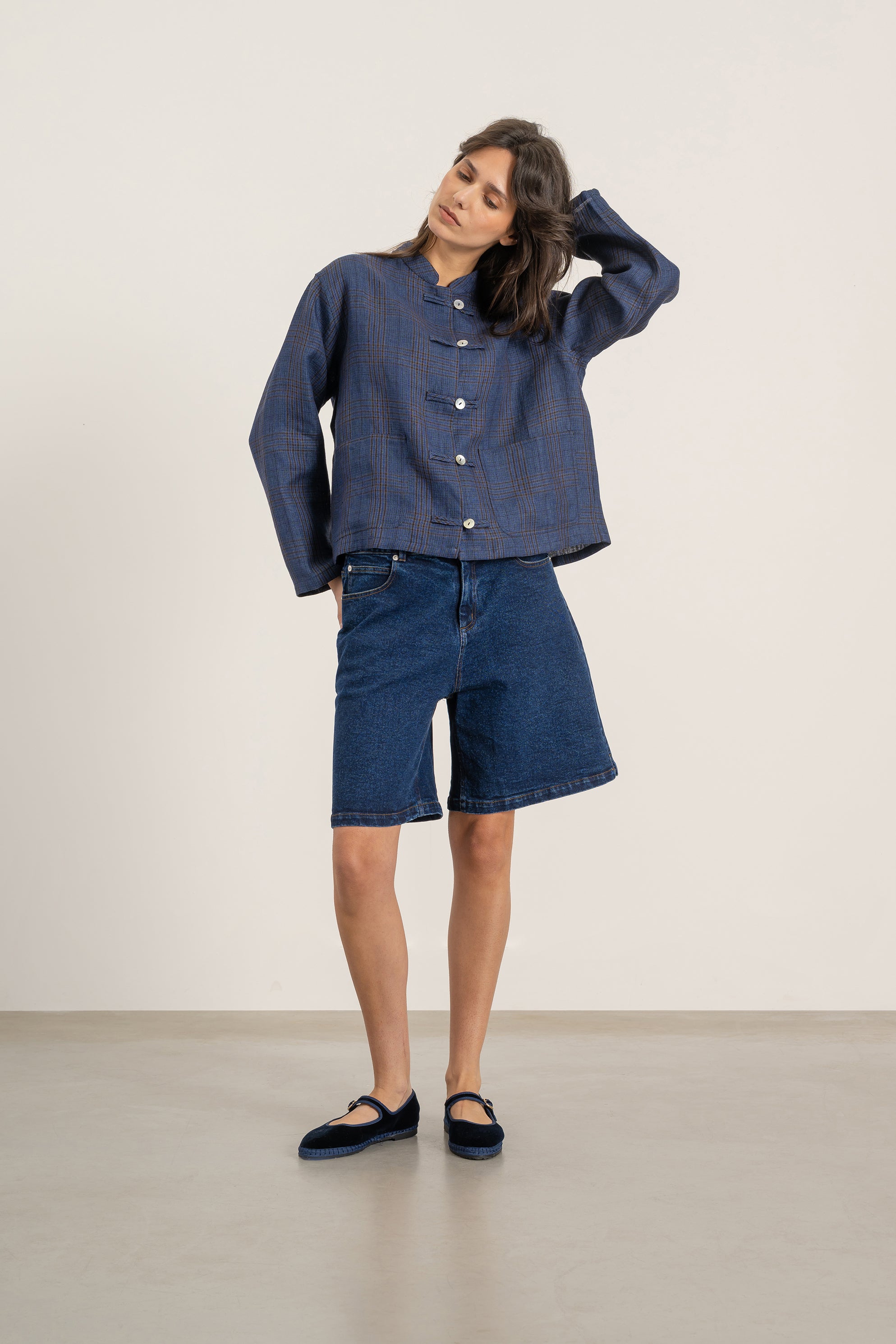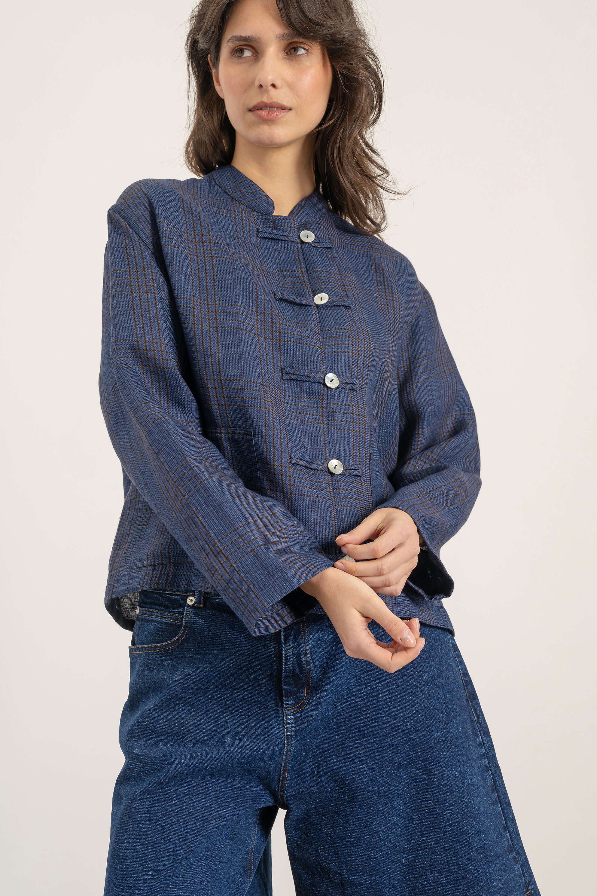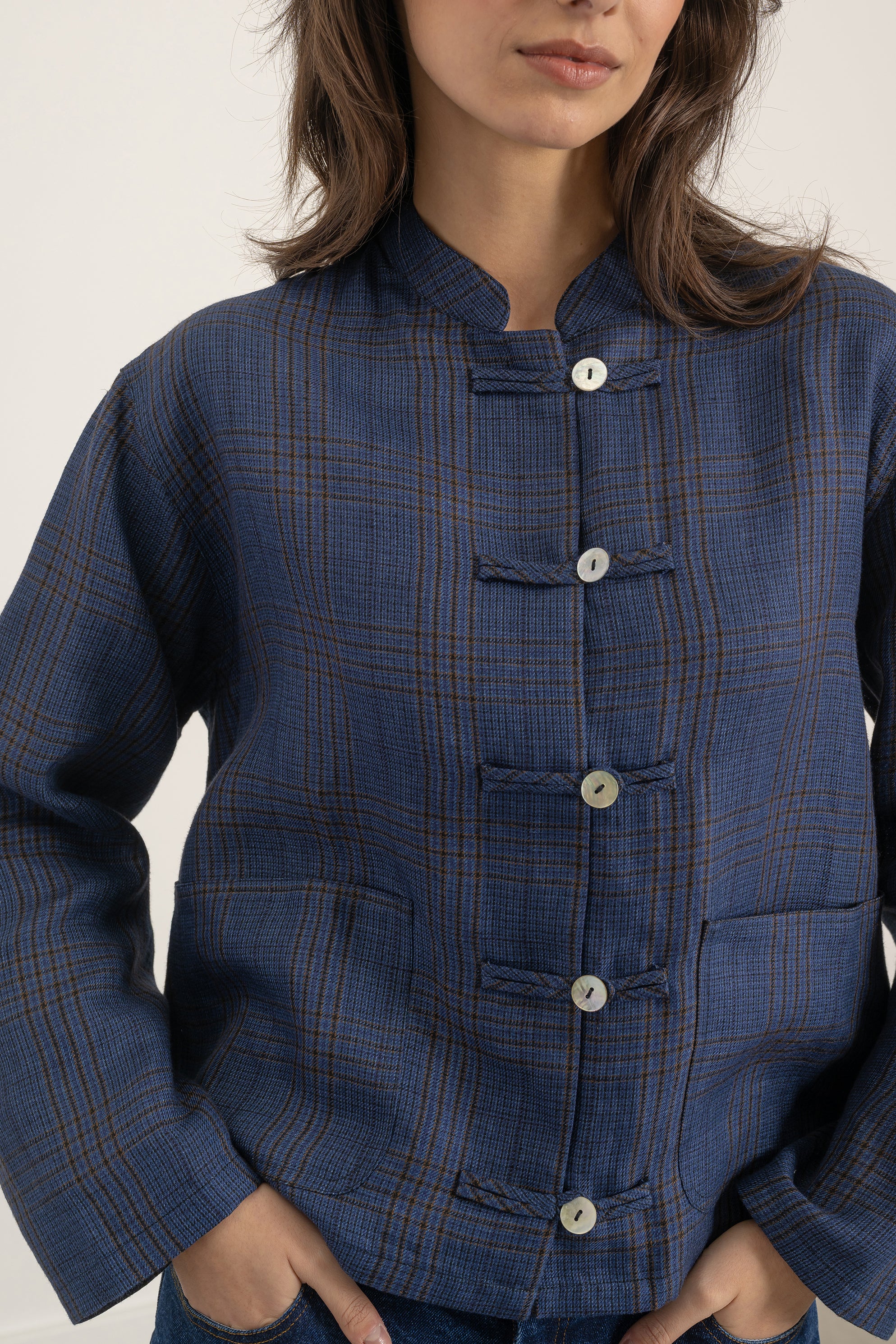 - Couleur : Carreaux 'Prince de Galles' bleu et caramel