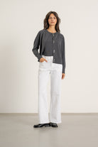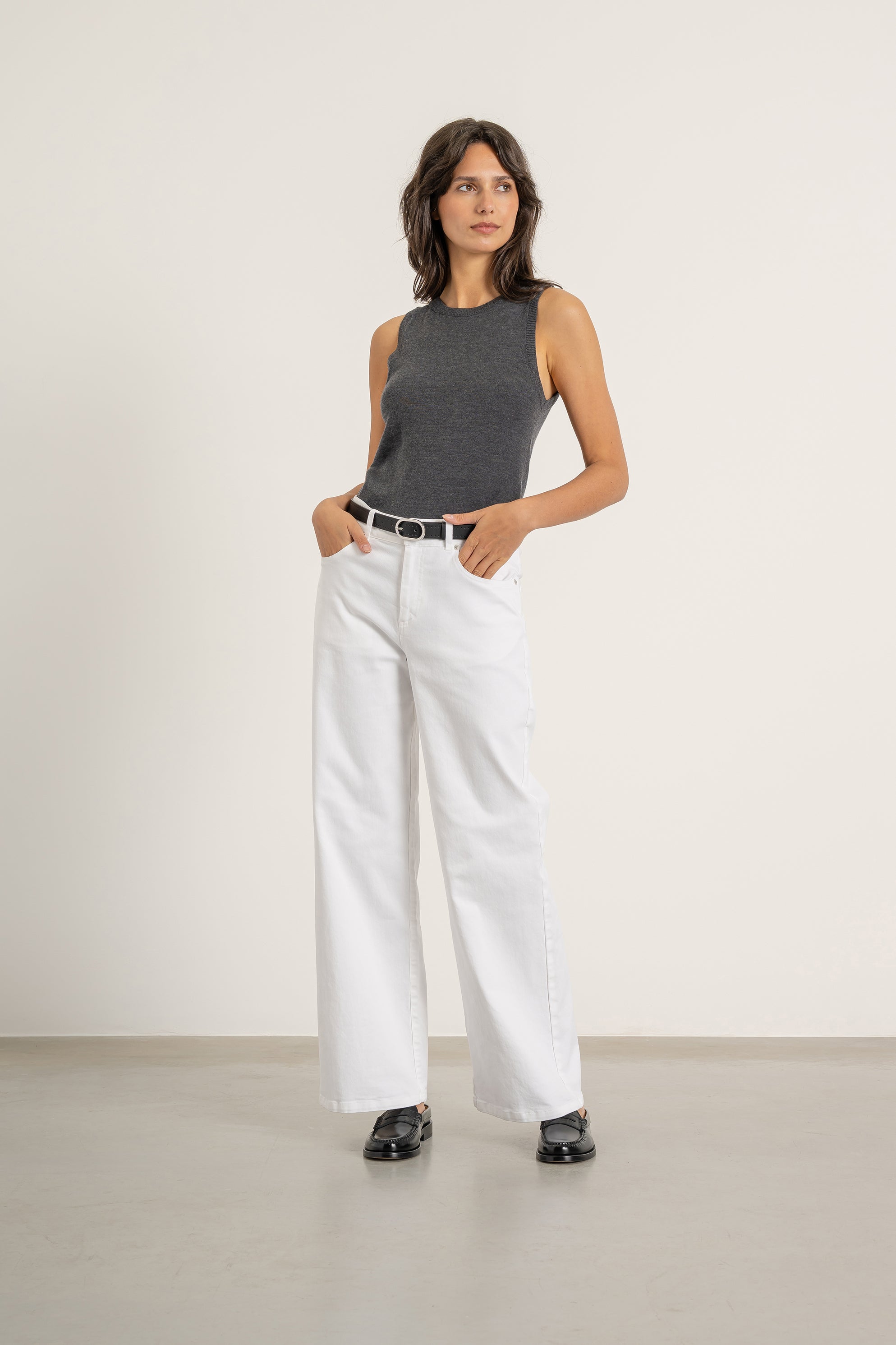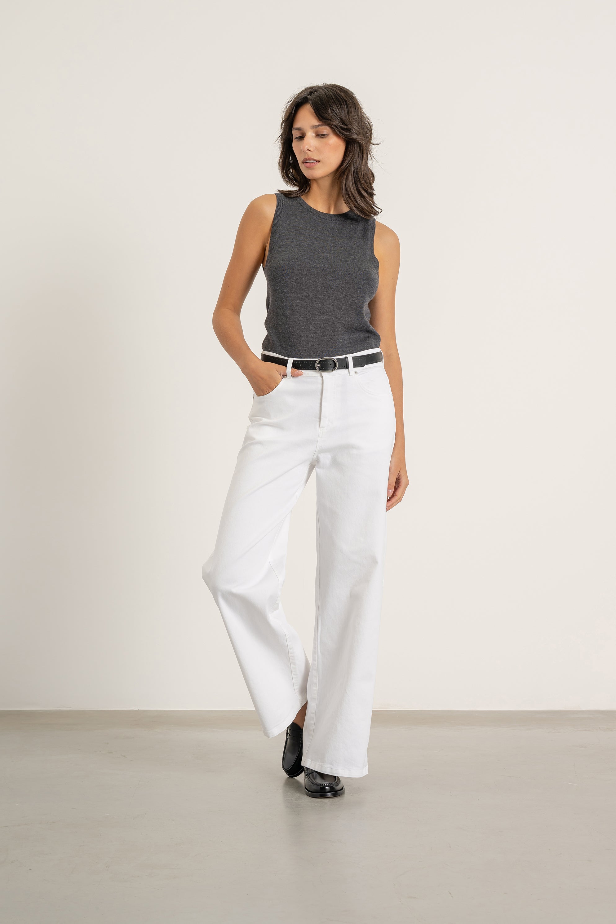 - Finitions côtelées au col, aux emmanchures et à la base